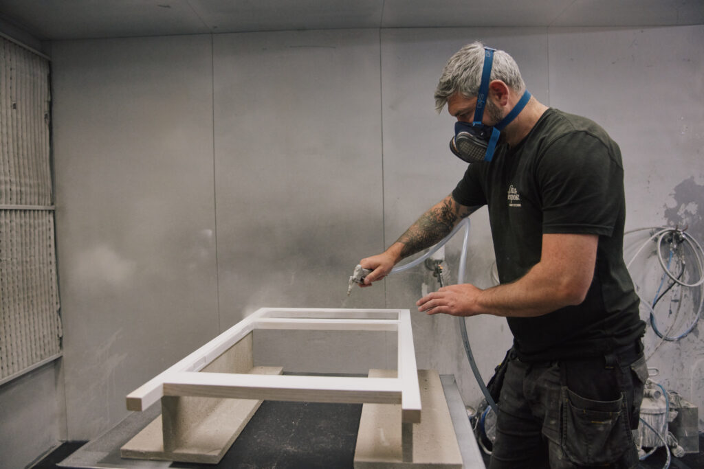 We don’t just design your furniture; we build and finish it ourselves. As you can see, this involves a lot of hands-on work. We personally sand, spray, and inspect every item that leaves our workshop, ensuring total control over the quality.